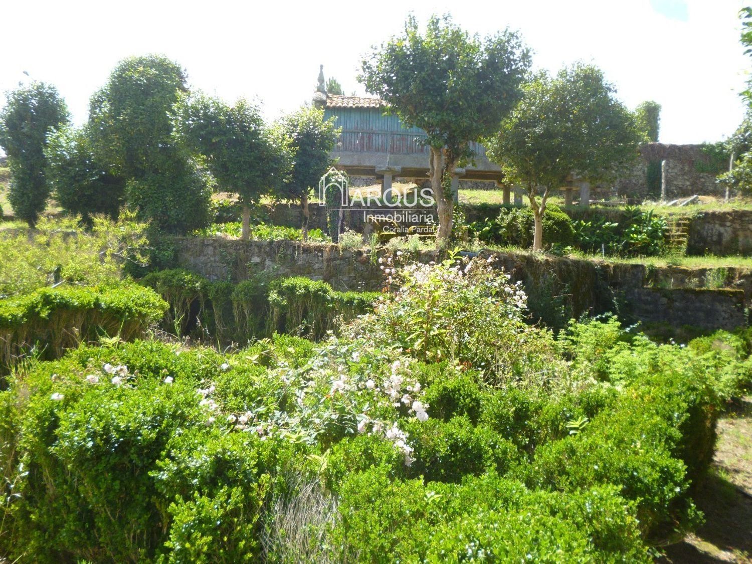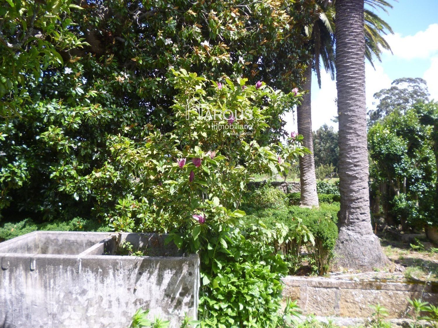 El exterior es un verdadero oasis, con jardines que lucen palmeras, camelias y magnolios, perfectos para disfrutar de la naturaleza. Además, la propiedad incluye diversas edificaciones como un gran palomar, un hórreo, una bodega y varios alpendres, que añaden un encanto especial a este lugar. La gran terraza es el sitio ideal para relajarse y disfrutar de las vistas.