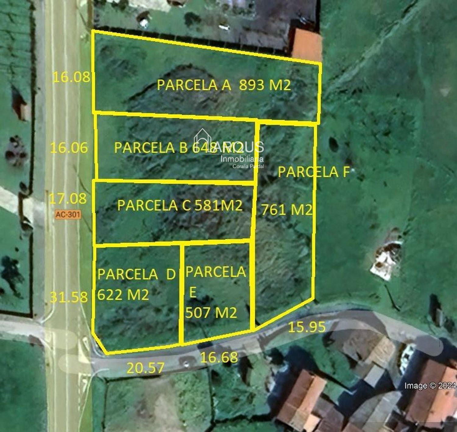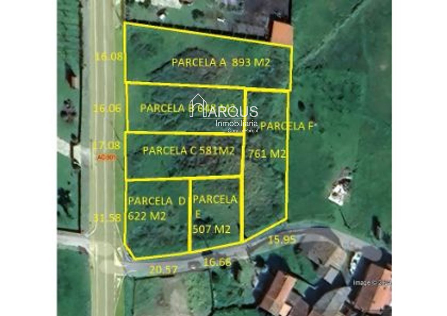 Parcela A: 893 m2 con 16.08 metros de frente.