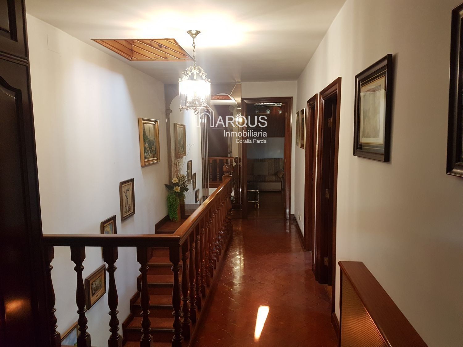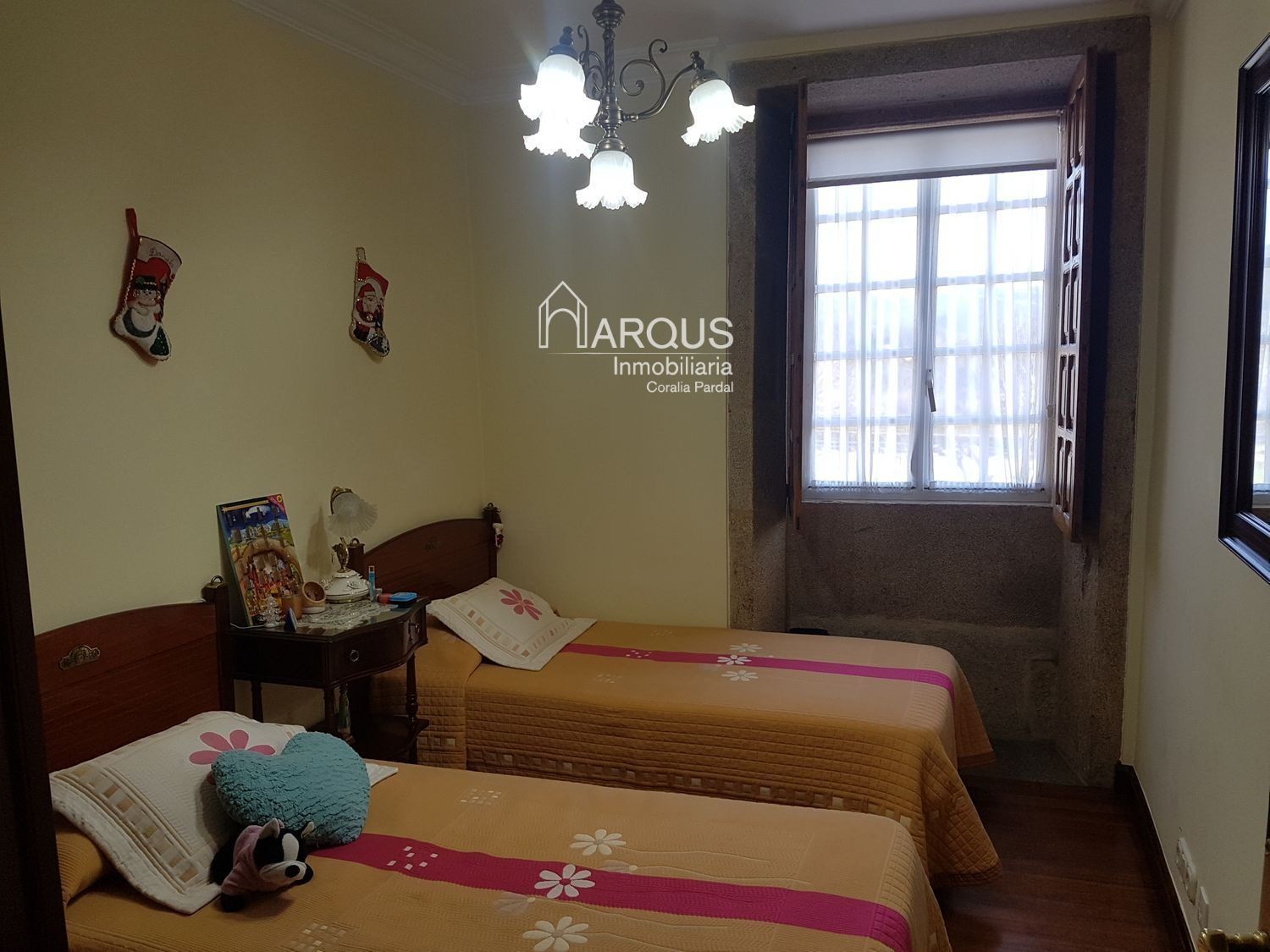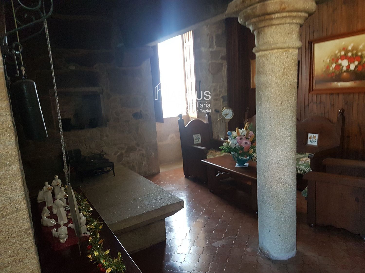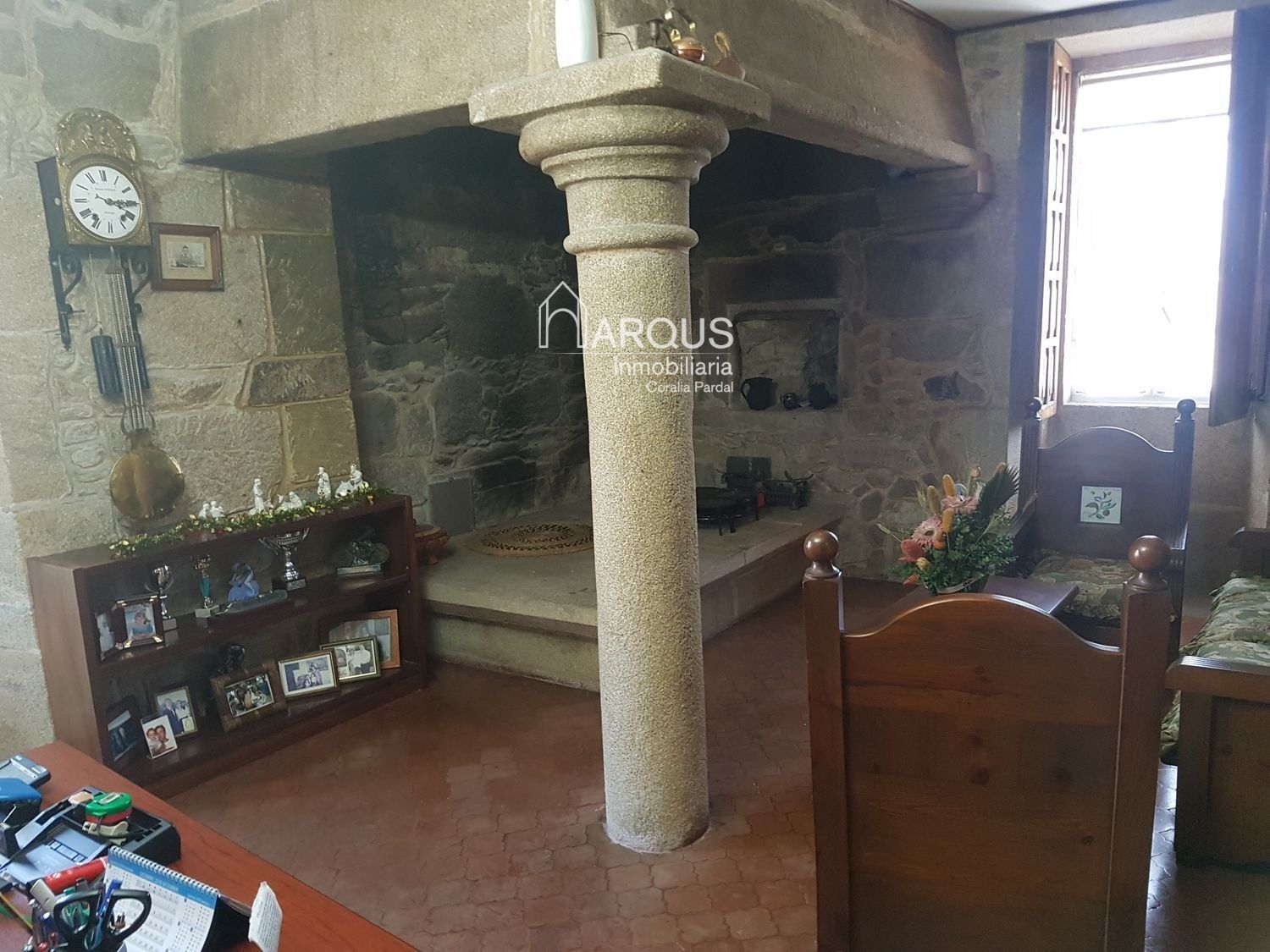 Primera planta cuenta con 3 dormitorios, 2 baños y sala de estar-despacho con una lareira espectacular.